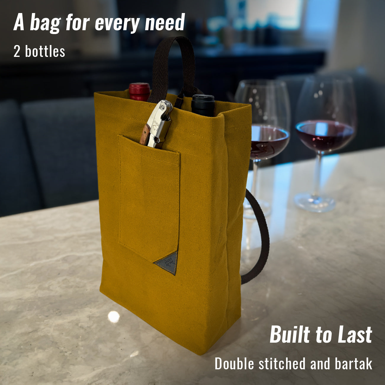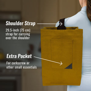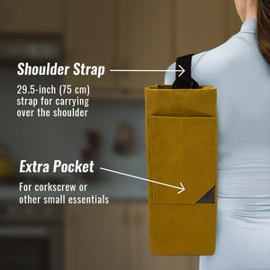 A BOLSA ESSENCIAL PARA GARRAFAS DE VINHO - Transporte sua garrafa favorita com segurança usando nossa sacola de lona de algodão durável. O design versátil é ideal para jantares BYOB (Leve sua própria bebida), idas a restaurantes, degustações de vinho ou qualquer viagem, garantindo que suas garrafas estejam seguras. Sua estrutura portátil e leve a torna fácil de carregar e ainda apresenta um bolso extra para o seu saca-rolhas ou outros pequenos acessórios essenciais.