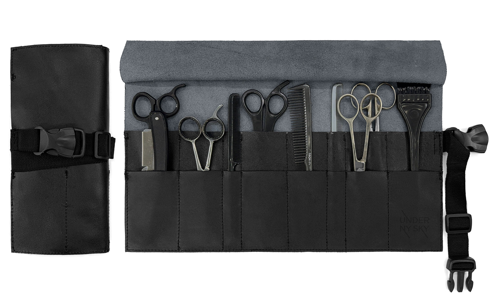 EsgotadoEstojo Porta Tesoura - Salão de Beleza, Barbearia - Case Rolo em Couro Legítimo para Tesouras de Corte de Cabelo, Pentes, Pincéis, Lápis Maquiagem - Barbeiro, Cabeleireiro, Maquiador