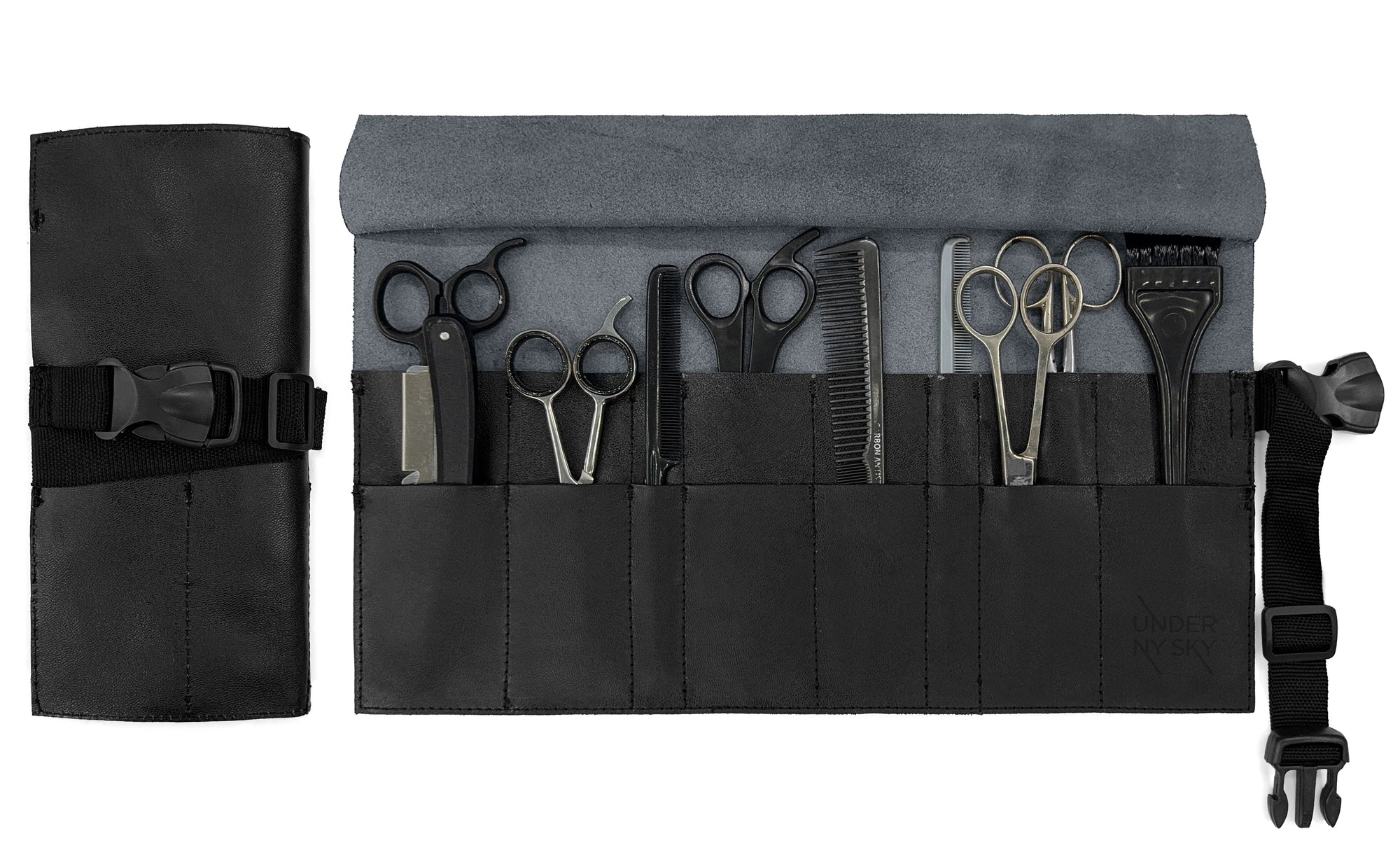 R$ 112,57 BRLEstojo Porta Tesoura - Salão de Beleza, Barbearia - Case Rolo em Couro Legítimo para Tesouras de Corte de Cabelo, Pentes, Pincéis, Lápis Maquiagem - Barbeiro, Cabeleireiro, Maquiador