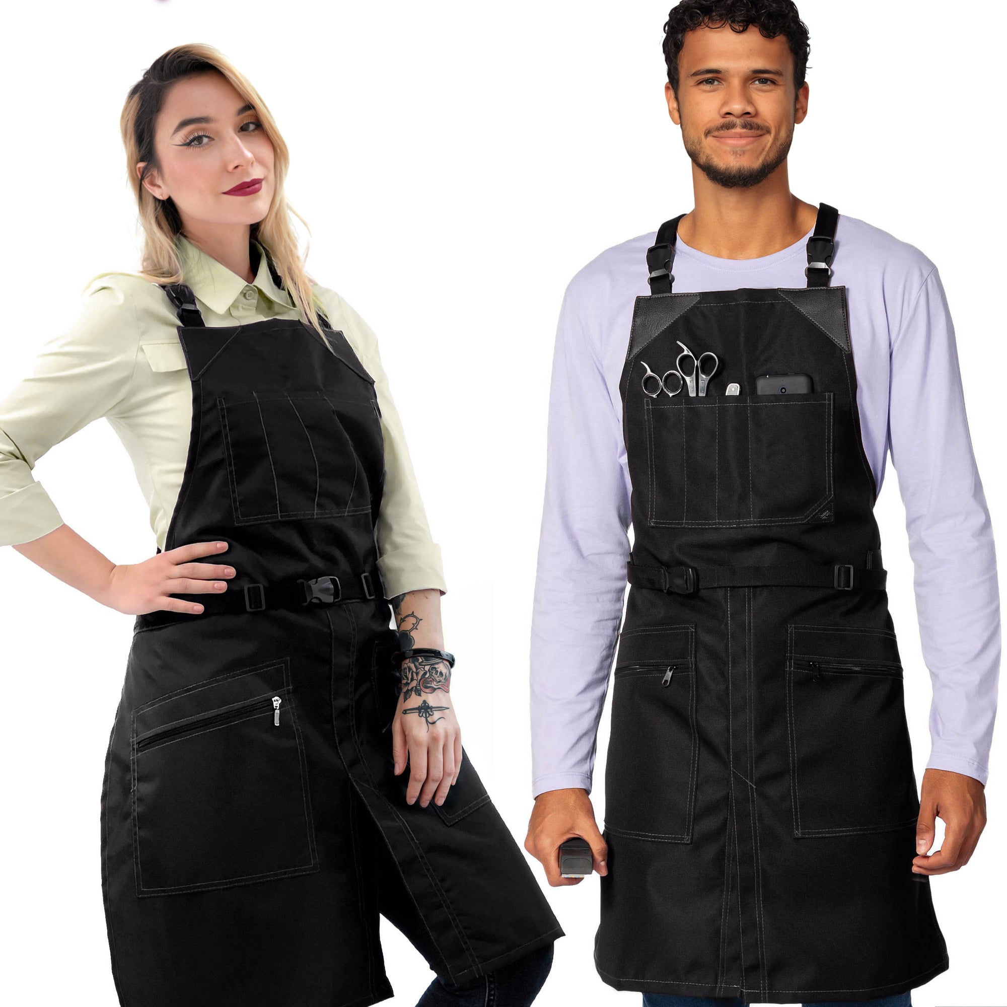 Avental Barbeiro Cabelereiro - Resistência A Químicos, Alças Cruzadas, Bolso com Lapela - Ajustável para Homem e Mulher - Ideal para salão, babearia