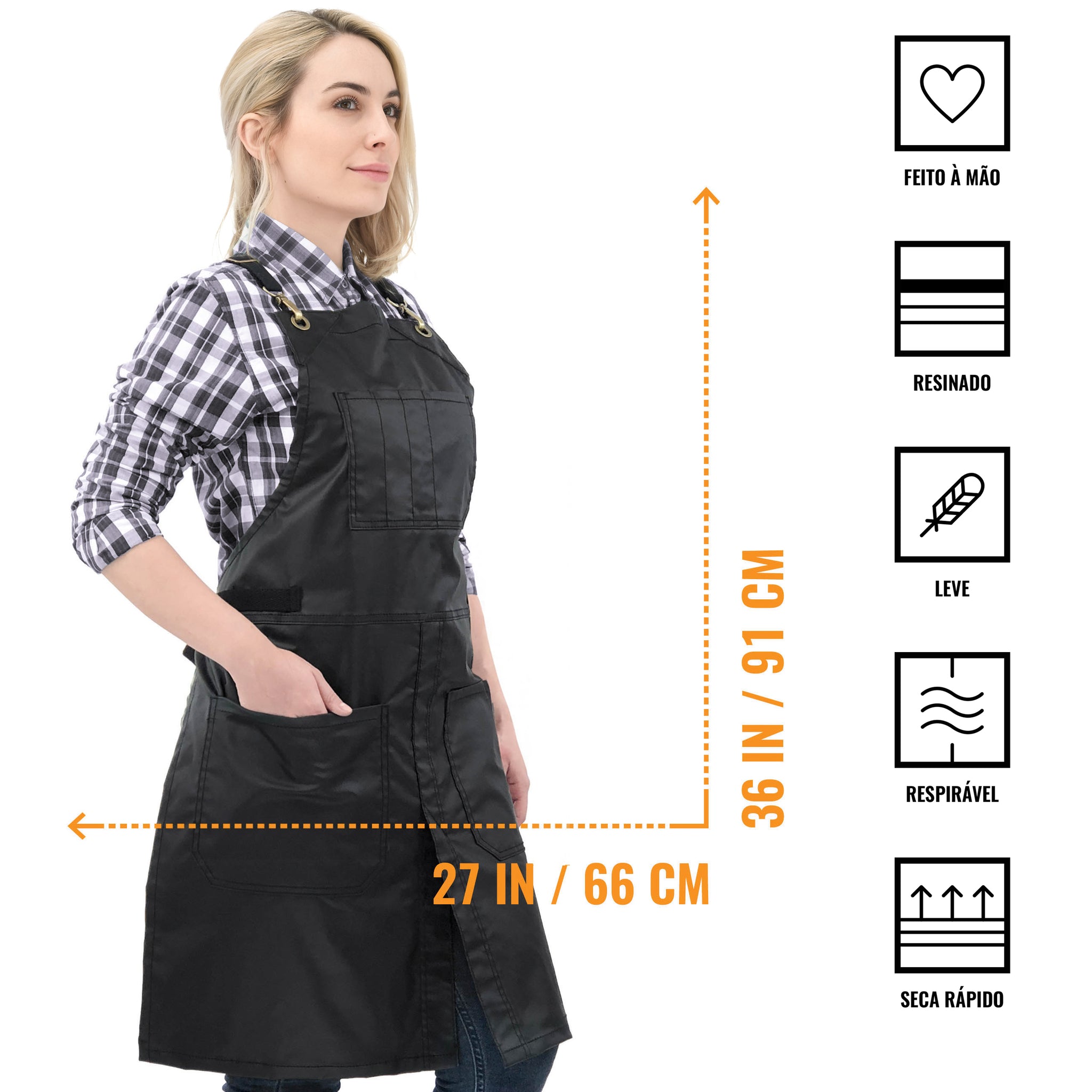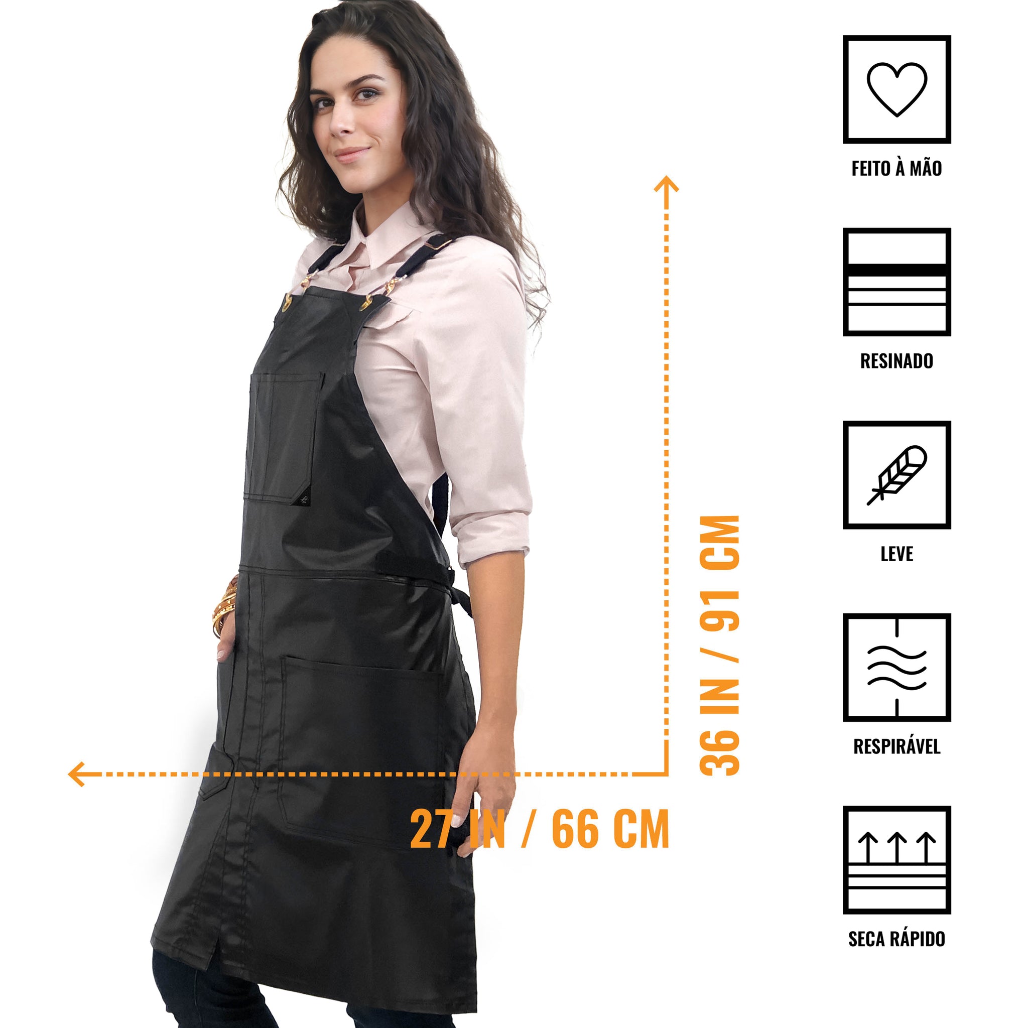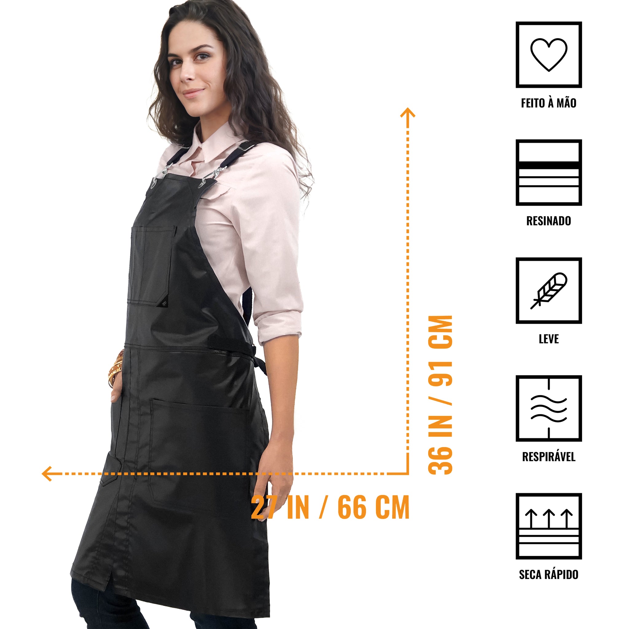 - Limpeza e Cuidados -remover as correias e lavar apenas o avental à máquina ou mão com água fria. Não usar água sanitária. Secar no varal. Evitar secadora. Ferro quente apenas no verso, se necessário. Nas primeiras lavagens, como qualquer outro tecido, aconselhamos lavar separado ou com outras peças de cor semelhante para evitar possíveis transferências de cor. Retire as alças e lave/seque-as separadamente. Para lavar ou secar em máquina ponha as correias em um saco de proteção para lavagem.