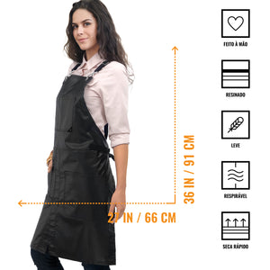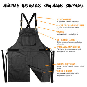 Avental para Salão - Revestido, Resistente à água, Alças Cruzadas, Fenda de Perna - Cabeleireiro, Barbeiro, Tatuador