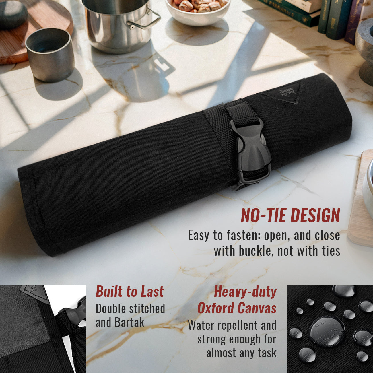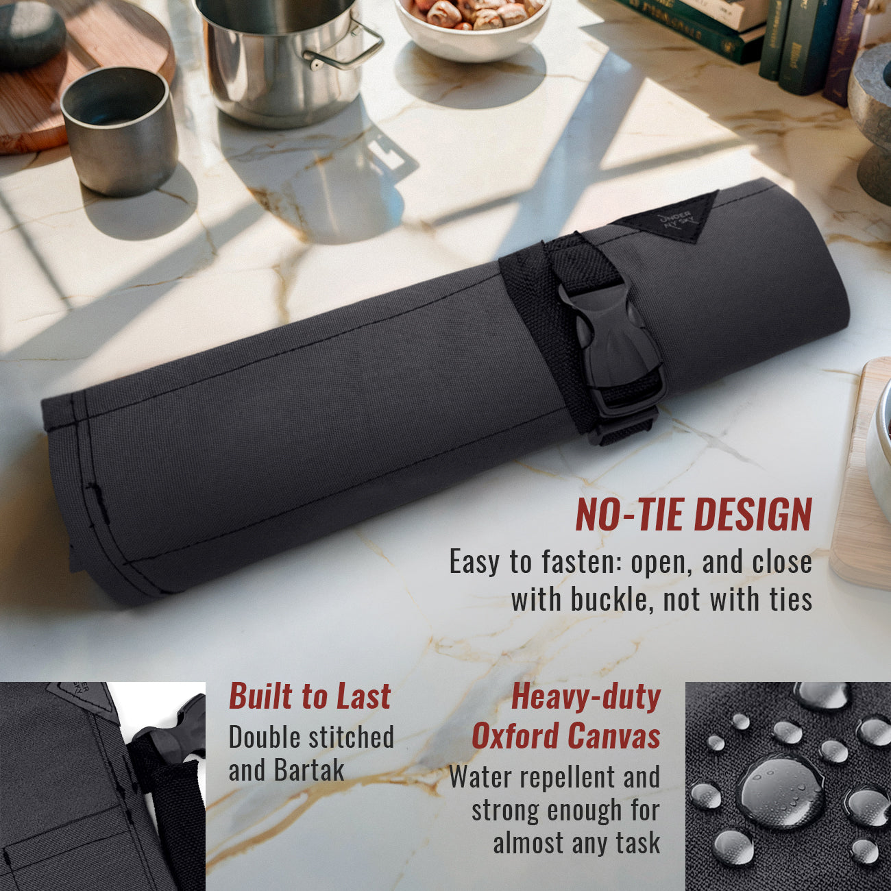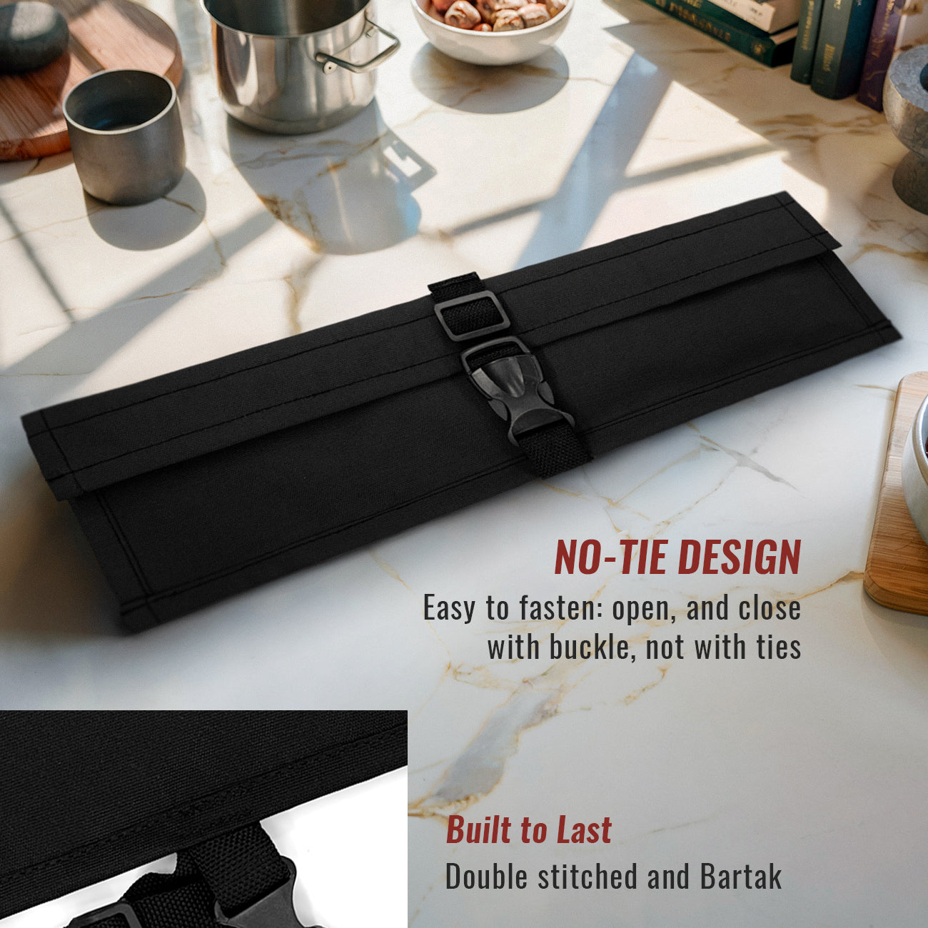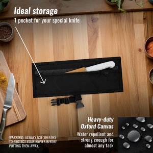 Fecho Seguro – Alças fortes para você prender com segurança usando um fecho resistente de alta qualidade – fácil de abrir e fechar quando precisar. SEMPRE USE BAINHAS PARA PROTEGER SUAS FACAS ANTES DE GUARDÁ-LAS.