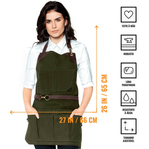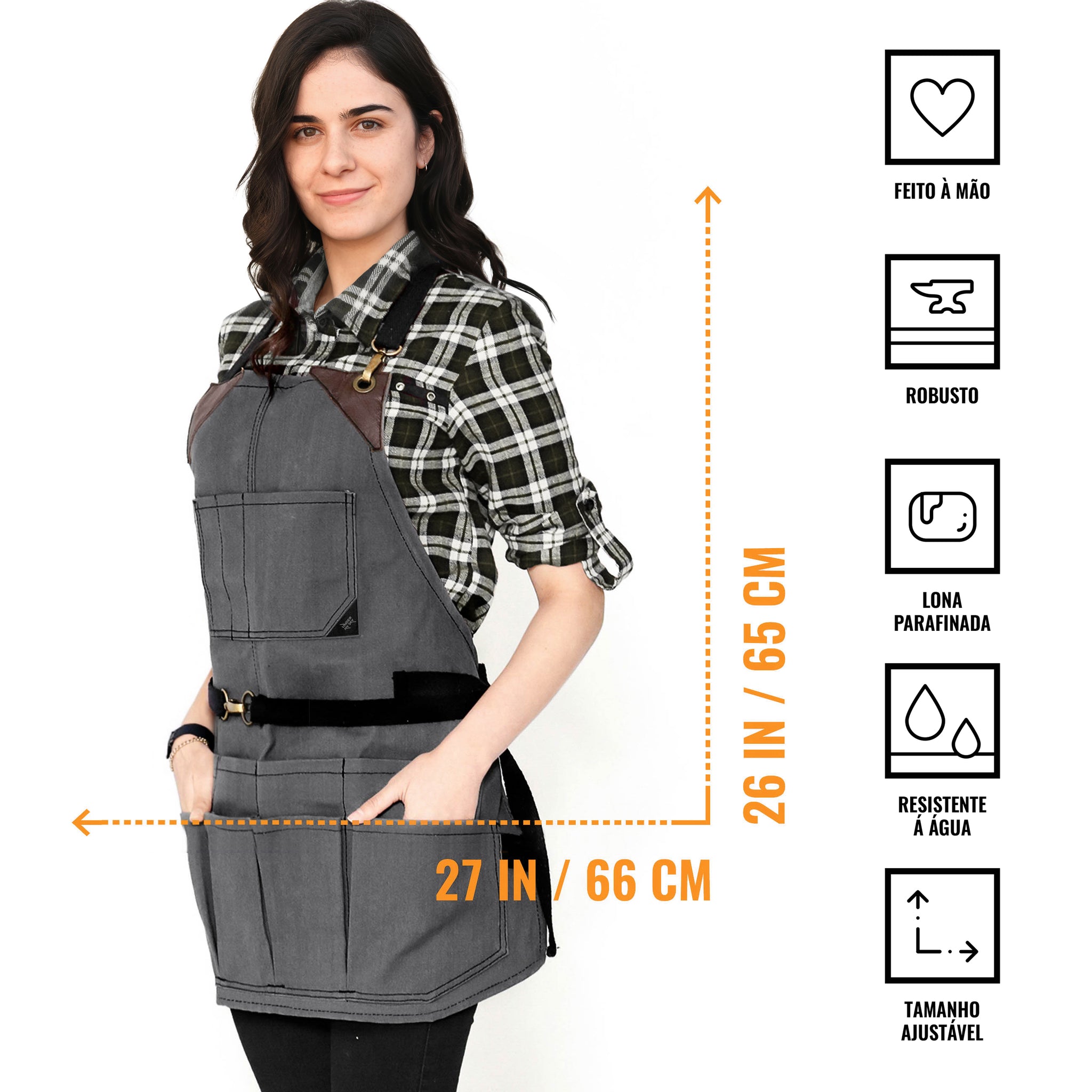 - Feito em Lona Parafinada Grossa e Resistente à água -12 bolsos de vários tamanhos reforçados para todas as suas ferramentas e utensílios essenciais. Reforçado com couro legítimo.