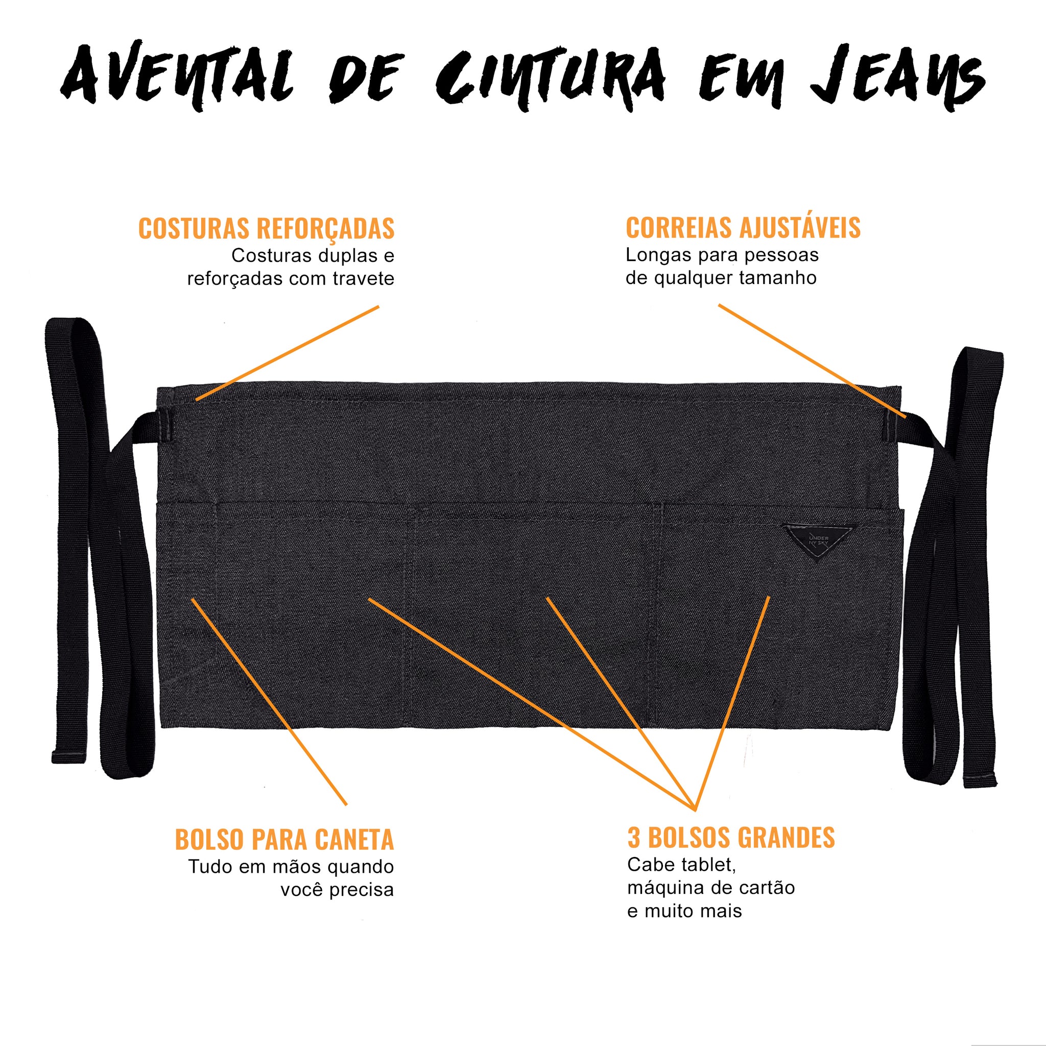 Avental de Cintura – 3 Bolsos, Sarja ou Jeans Profissional – Meio Avental – Garçom, Garçonete, Bartender, Restaurante, Cafeteria