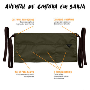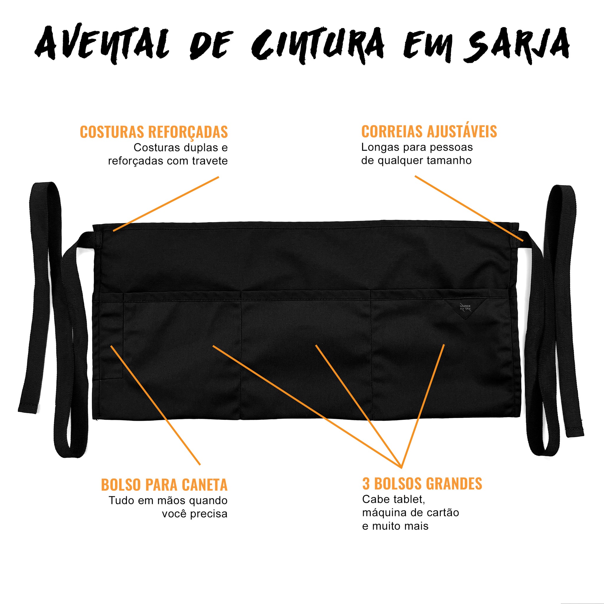 Avental profissional ideal para garçom, barista, barman, restaurantes, bares, hotéis, lojista e muito mais.